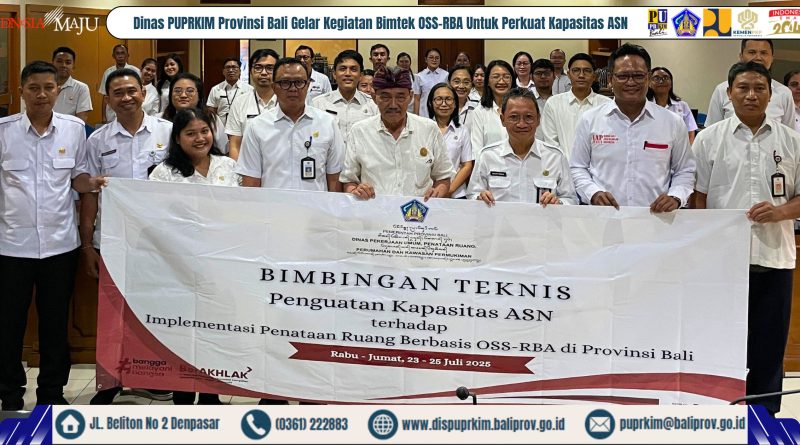 Dinas Pekerjaan Umum, Penataan Ruang, Perumahan dan Kawasan Permukiman (PUPRKIM) Provinsi Bali kembali menegaskan komitmennya untuk meningkatkan kompetensi sumber daya manusia di jajarannya. Sebuah Bimbingan Teknis (Bimtek) bertajuk “Penguatan Kapasitas ASN Terhadap Implementasi Penataan Ruang Berbasis OSS-RBA” diselenggarakan secara intensif selama tiga hari. Kegiatan yang ditujukan khusus bagi Aparatur Sipil Negara (ASN) ini berlangsung dari hari Rabu hingga Jumat, 23-25 Juli 2025, bertempat di Ruang Rapat Utama Dinas PUPRKIM Provinsi Bali, Jalan Beliton Nomor 2, Denpasar.